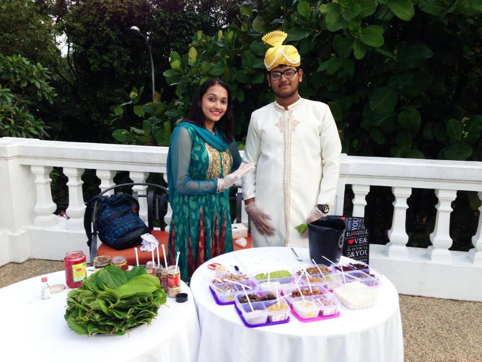 Paan is a stimulating and preparation of betel leaf combined with areca nut and/or cured tobacco.Paan is chewed and finally spat out or swallowed. Paan has many variations BUT Here in carnival munchies , we serveBetel leaf with coconut, fruit preserves, gulkand(rose petal preserves), various spices, maraschino cherry ,candied fruits and candy-coated fennel seeds.