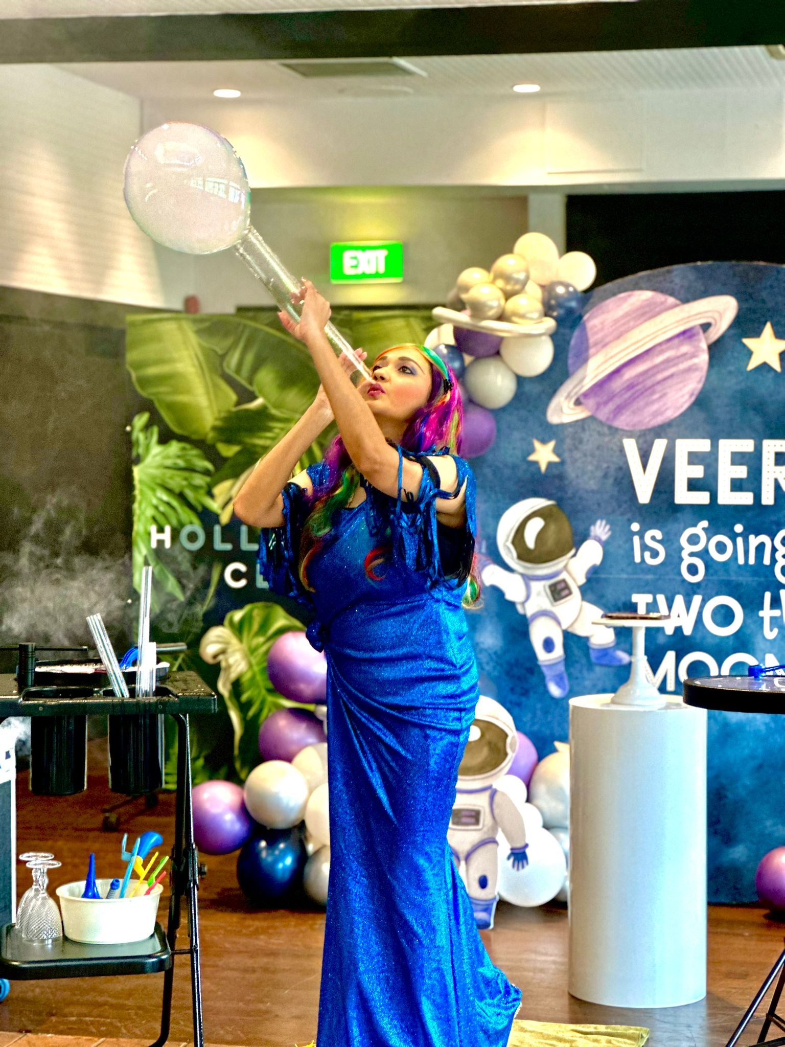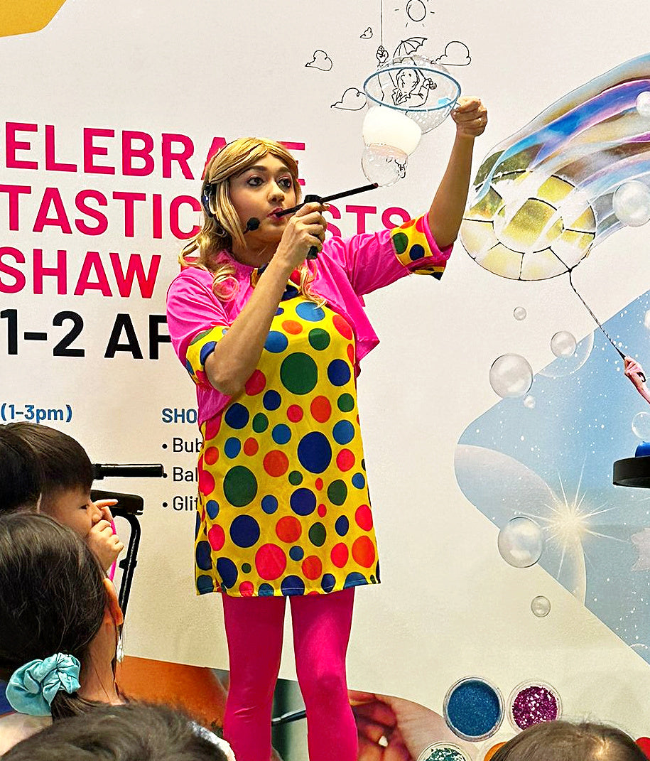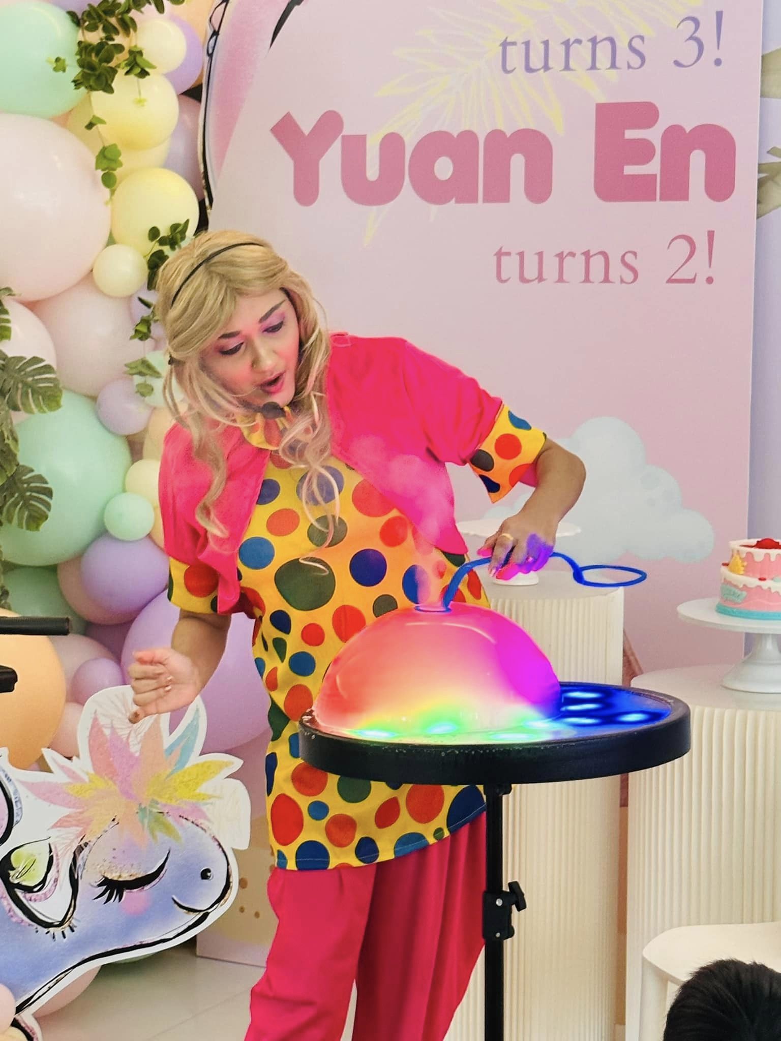 Sally, a female, Merlin Award Winner 2014 (Best Variety Entertainer Singapore) by the International Magician Society. Sally has been a Professional Magician Assistant, Bubble Artist, CBA Certified Balloon Decorator and Balloon Twister, Face painter, Glitter Tattooist and a great Emcee. Our super fun Sally Bubble Show is one of the first of its kind. She is always dressed in a vibrant costume and the kids love her. Book her fantastic bubble show to amaze audiences of all ages with a colorful and creative performance with lots of interaction. Suitable for many types of events, the bubble shows can take place both indoors and outdoor venues. The children’s entertainer is a very popular choice for both private and corporate events ranging from birthday parties to city celebrations She have 11 yrs of experience in the event industry and have received lots of love and positive feedback from customers from all different walks of life. She always believe in making your party a memorable one. You may also visit her website: “http://www.sallybubbleshow.com” |